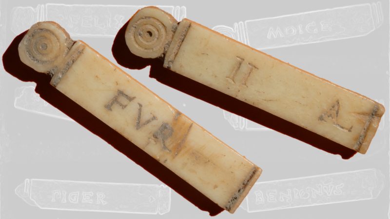 Il rinvenimento in fase di scavo qualche anno fa di una tessera in osso caratterizzata dalla presenza di una parola su una delle due facce e di un numero sull’altra è stata l’occasione per fare il punto su questa classe di materiale. L’aver potuto prendere in esame tutti gli esemplari conosciuti, editi ed inediti, ha permesso un’analisi d’insieme che ha portato a novità circa la loro produzione, diffusione, cronologia e al loro corredo epigrafico. Tutti i dati ricavabili dalla disamina delle tessere sembrano indicare che si tratta assai verosimilmente di elementi di un gioco di un ambito geografico e cronologico piuttosto ristretti.